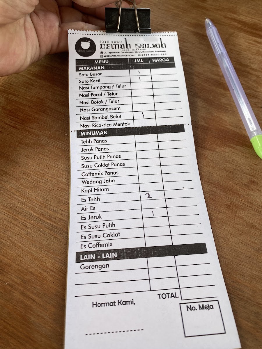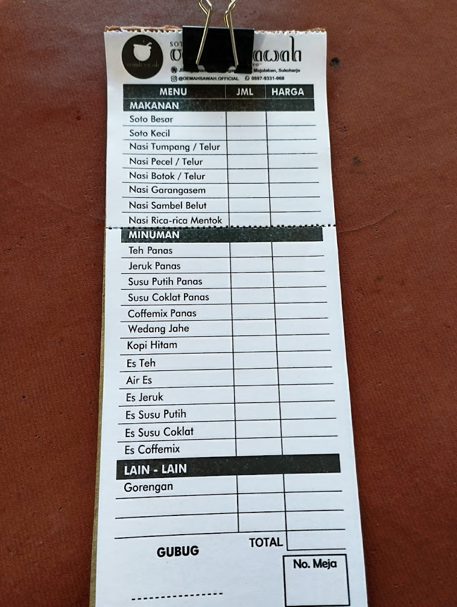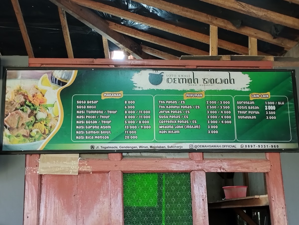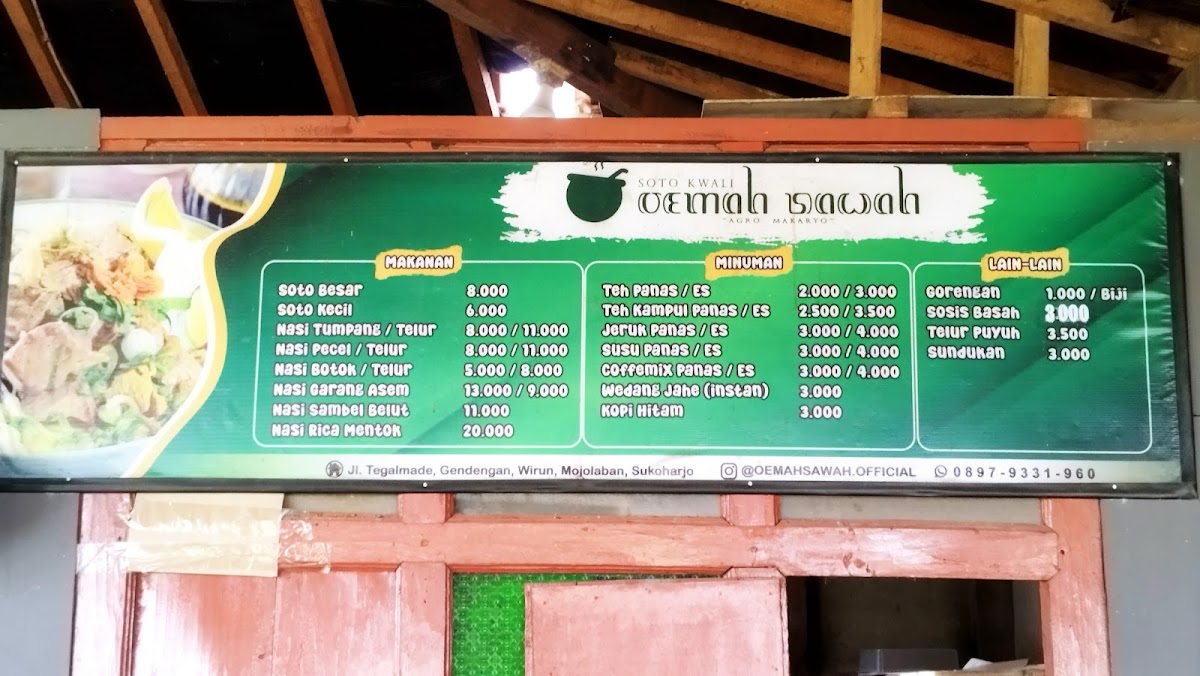 Introducing the Menu at Soto Kwali Oemah Sawah